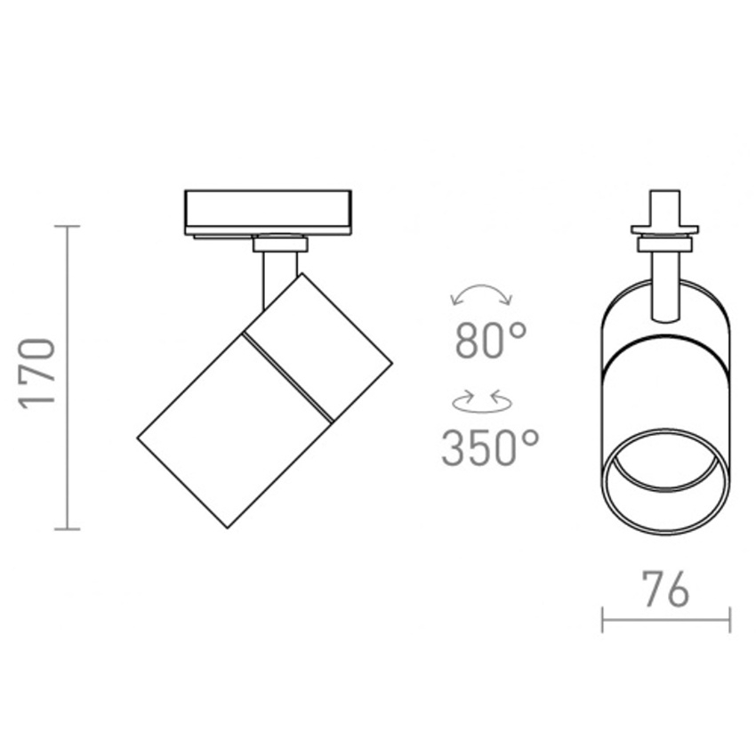 Stmívatelné válcové svítidlo pro jednookruhovou lištu s možností nastavení barvy světla: teplá bílá (WW), neutrální bílá (NW), studená bílá (CW). Stmívání TRIAC.