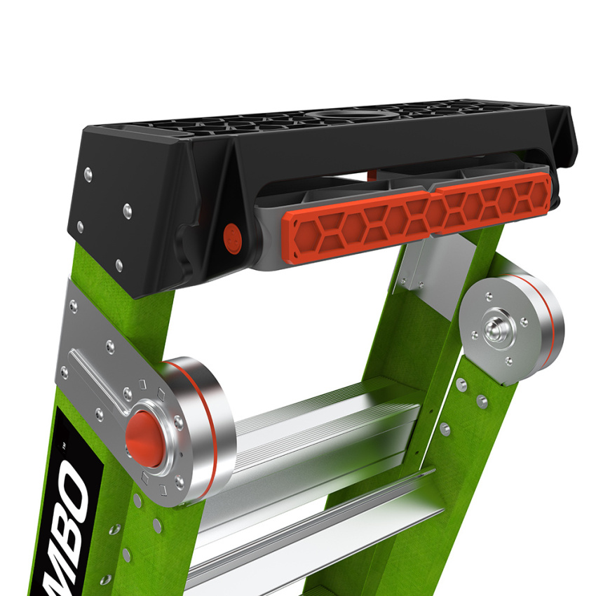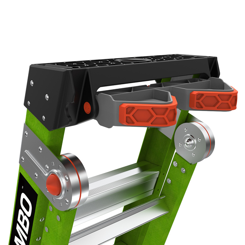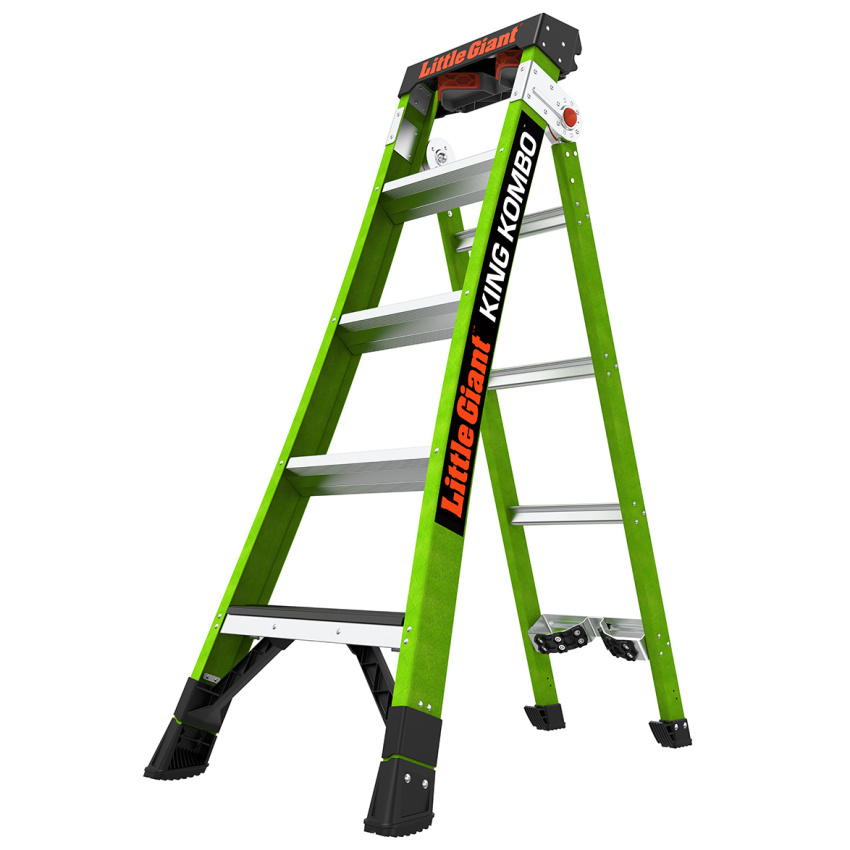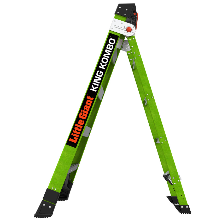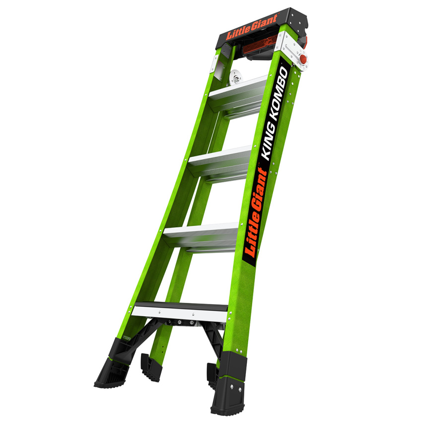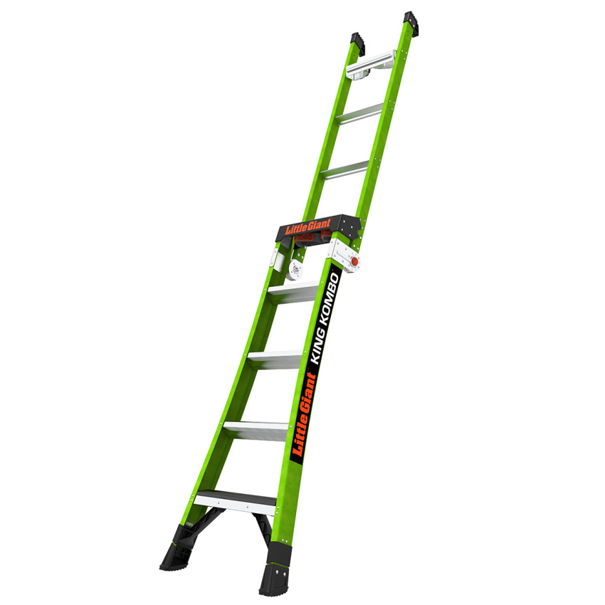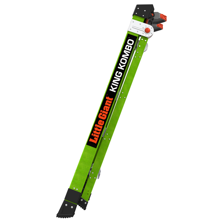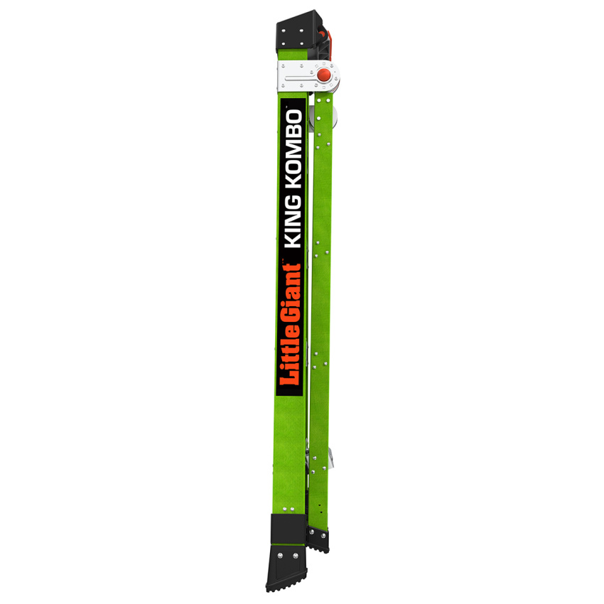King Kombo je opíratelný žebřík vyhovující OSHA / ANSI. Bezpečně si opřete žebřík, abyste se mohli přiblížit své práci.