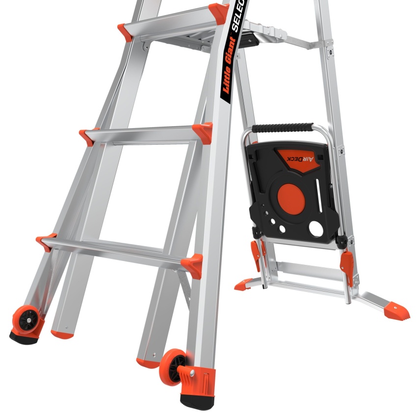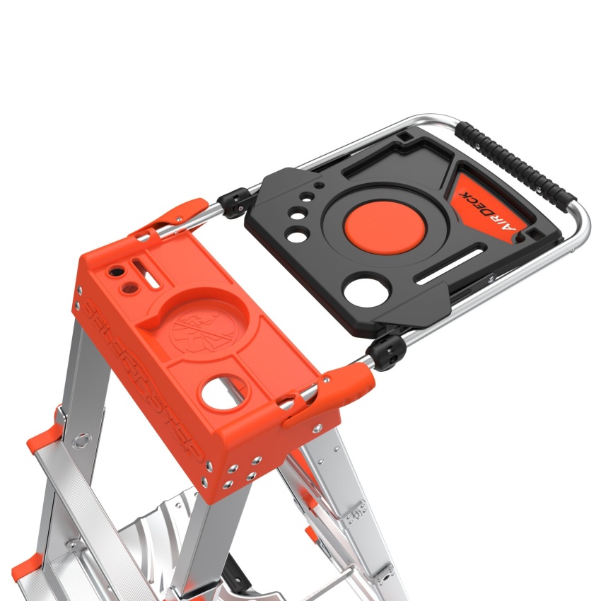 Svůj žebřík použijete k rychlému dokončení práce a organizér AirDeck® vám to ještě usnadní. Připojte Little Giant AirDeck k žebříku Select Step, abyste mohli mít v horní části žebříku pohodlnou pracovní stanici. Slouží také jako bezpečnostní zábradlí, které minimalizuje pocity závratí při práci ve výšce. Příslušenství AirDeck je součástí balení.
