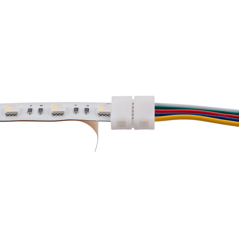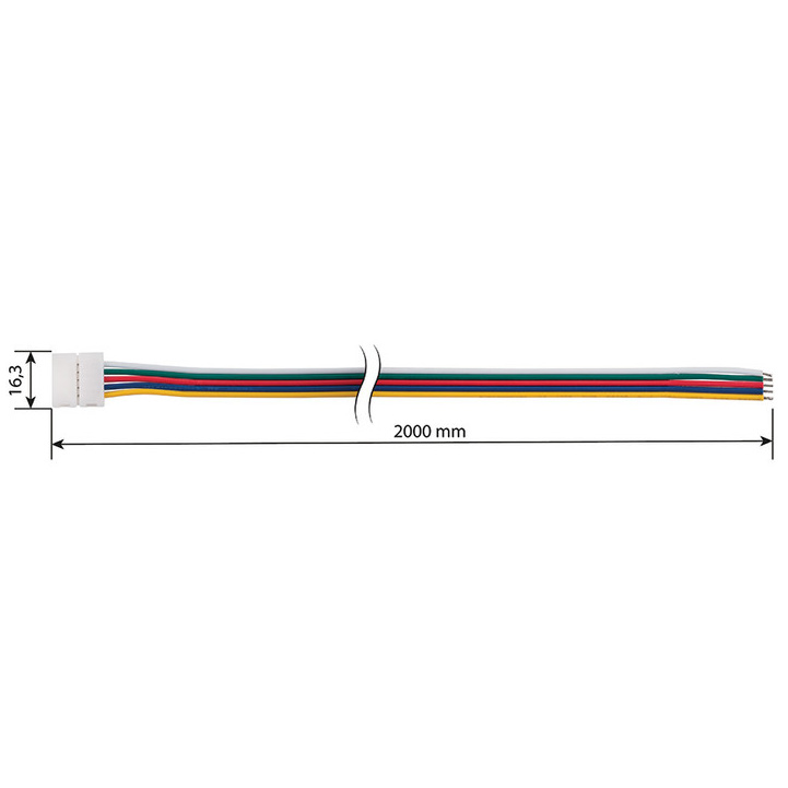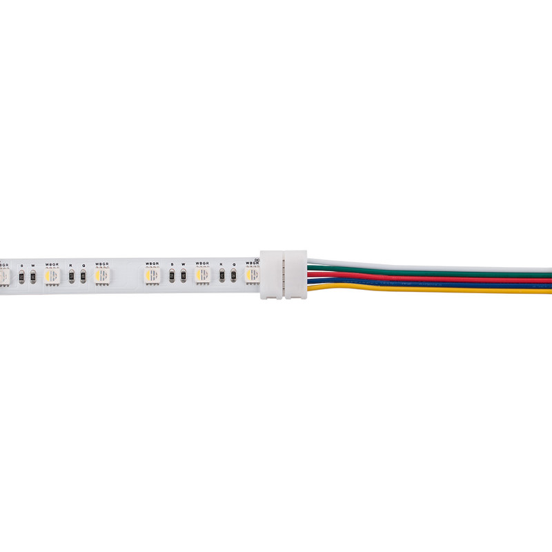 Připojovací konektor RGBW 12mm LED pásků se 60xLED 5050/m. Slouží k jednoduchému a rychlému připojení LED pásků k řízení, délka přívodu cca 2 m. Do kontaktů v konektoru se vsune LED pásek a konektor se zaklapne. Konektor je určen pro max. proud 2A, pro větší proudy je třeba vodiče k LED pásku připájet. Rozměry cca 2016x16,3x5,1 mm.