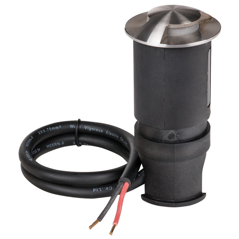 McLED Zemní LED svítidlo Ground S2 z nerezové oceli 316, příkon 3W, napětí DC24V (zdroj není součástí dodávky), barva světla teplá bílá 3000K, světelný tok 22lm, stupeň krytí IP67, index podání barev CRI 80, součástí svítidla kabel 0,5m (2x0.75mm?), směr světla boční 2x120°, životnost 25 000hod., vnější rozměry ?48x100mm. Zatížení 500 kg.