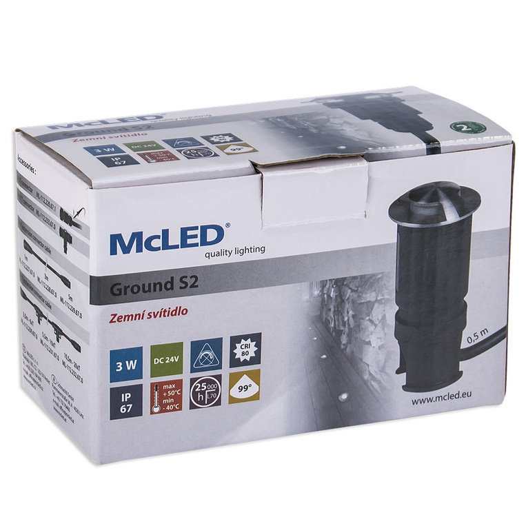 MCLED LED SVÍTIDLO GROUND S2 3W DC24V 4000K IP67 ZEM KAB.0,5M BEZ NAPÁJEČE ML-514.006.81.0
