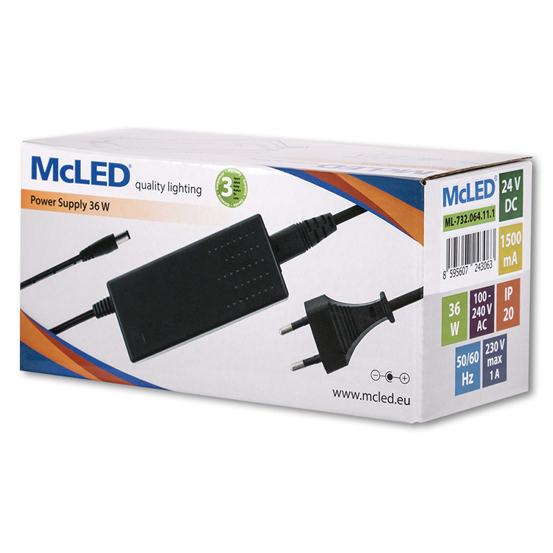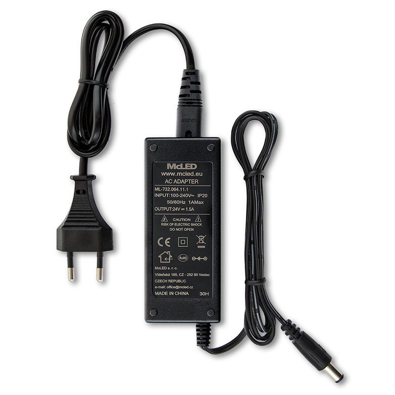 MCLED ZDROJ NAPÁJ. 36W 24VDC 1,5A IP20 ČERNÝ PLAST S VIDLICÍ ML-732.064.11.1