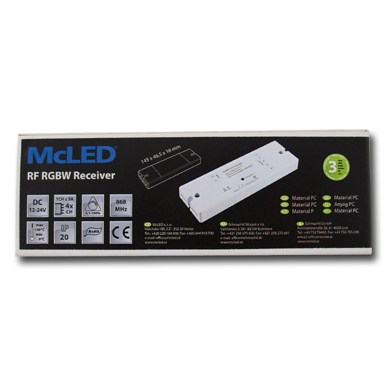 MCLED SADA OVLADAČ RF RGBW, 1 ZÓNA, BÍLÝ + PŘIJÍMAČ ML-910.547.22.1