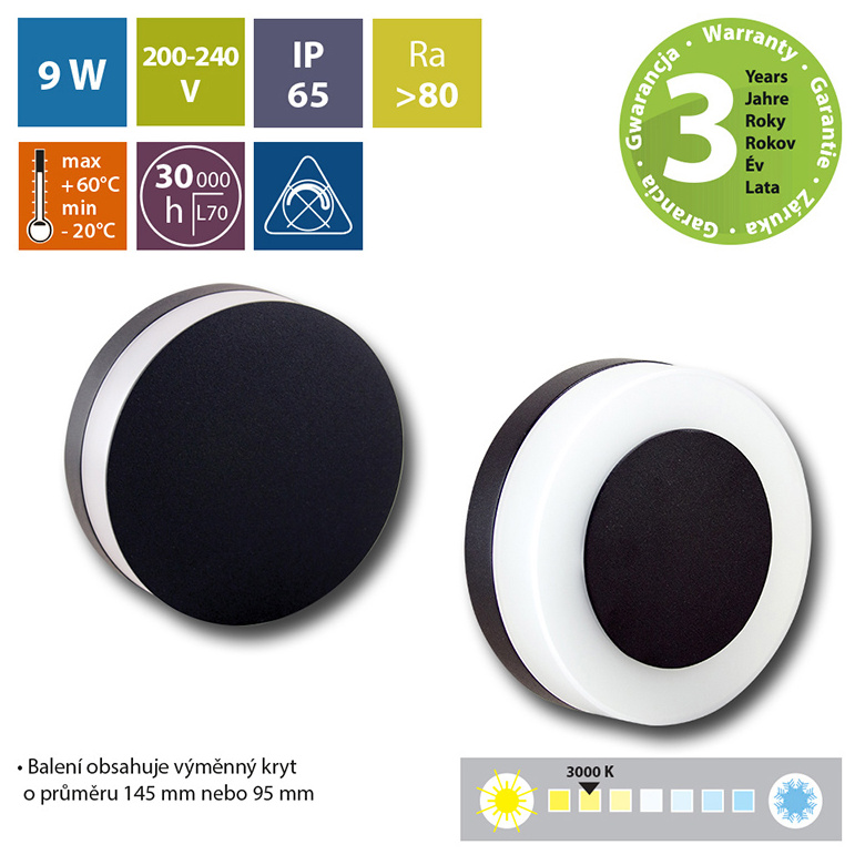 - Barva světla 3000 K (teplá bílá)