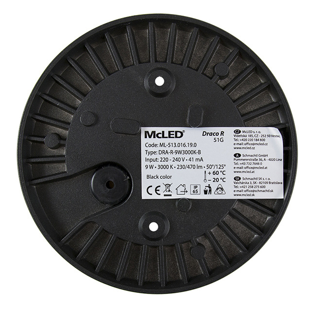 MCLED SVÍTIDLO LED DRACO R 9W 469LM 3000K IP65 NÁST. KRUH PRŮM. 145MM ČERNÁ