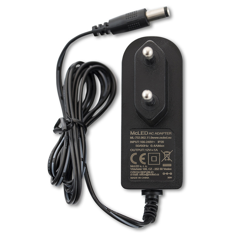 MCLED ZDROJ NAPÁJ. 12W 12VDC 1A IP20 ČERNÝ PLAST S VIDLICÍ ML-732.062.11.0