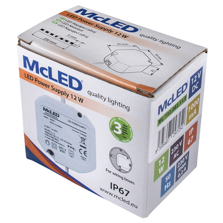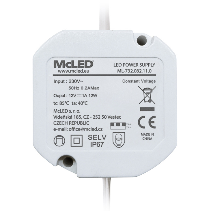 MCLED ZDROJ NAPÁJ. 12W DC12V 1A IP67 DO KRABICE ML-732.082.11.0