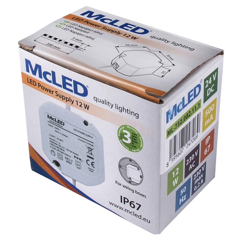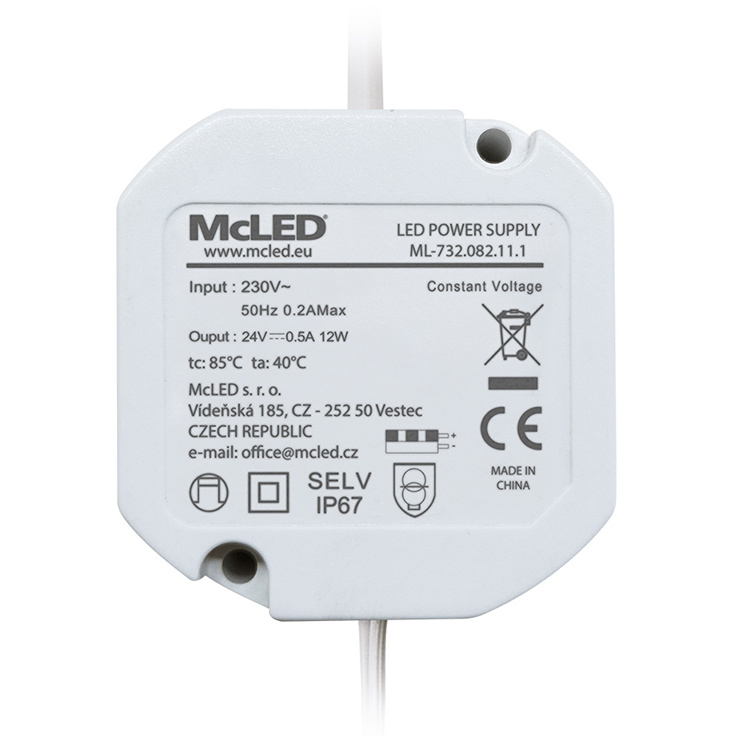 MCLED ZDROJ NAPÁJ. 12W DC24V 0,5A IP67 DO KRABICE ML-732.082.11.1