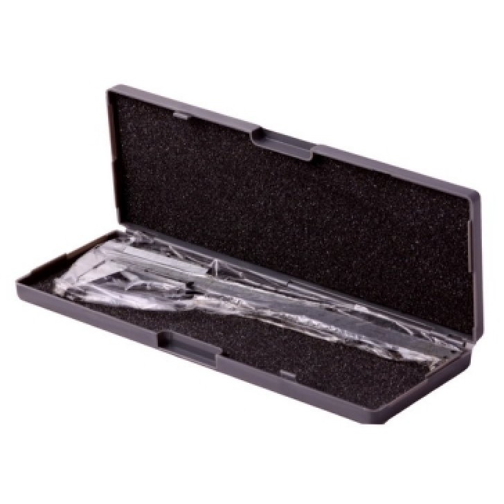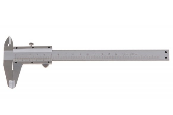 Posuvné měřidlo 0 - 150 mm s přesností 0,02 mm, metrická stupnice v mm, hloubkoměr, kvalitní nerezová ocel, přesné zpracování, plynulý posuv, šroubková aretace - vhodné pro stabilnější přenos rozměrů, tabulka převodů jednotek, plastové pouzdro.