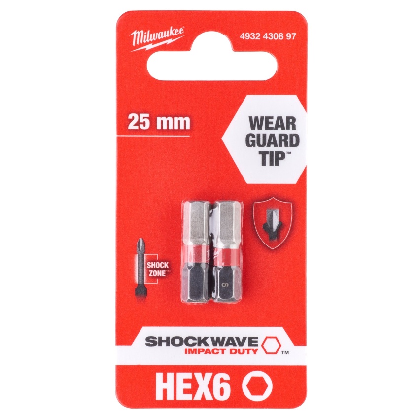 MILWAUKEE BITY ŠROUBOVACÍ SHW HEX6 25MM - 2KS, 4932430897