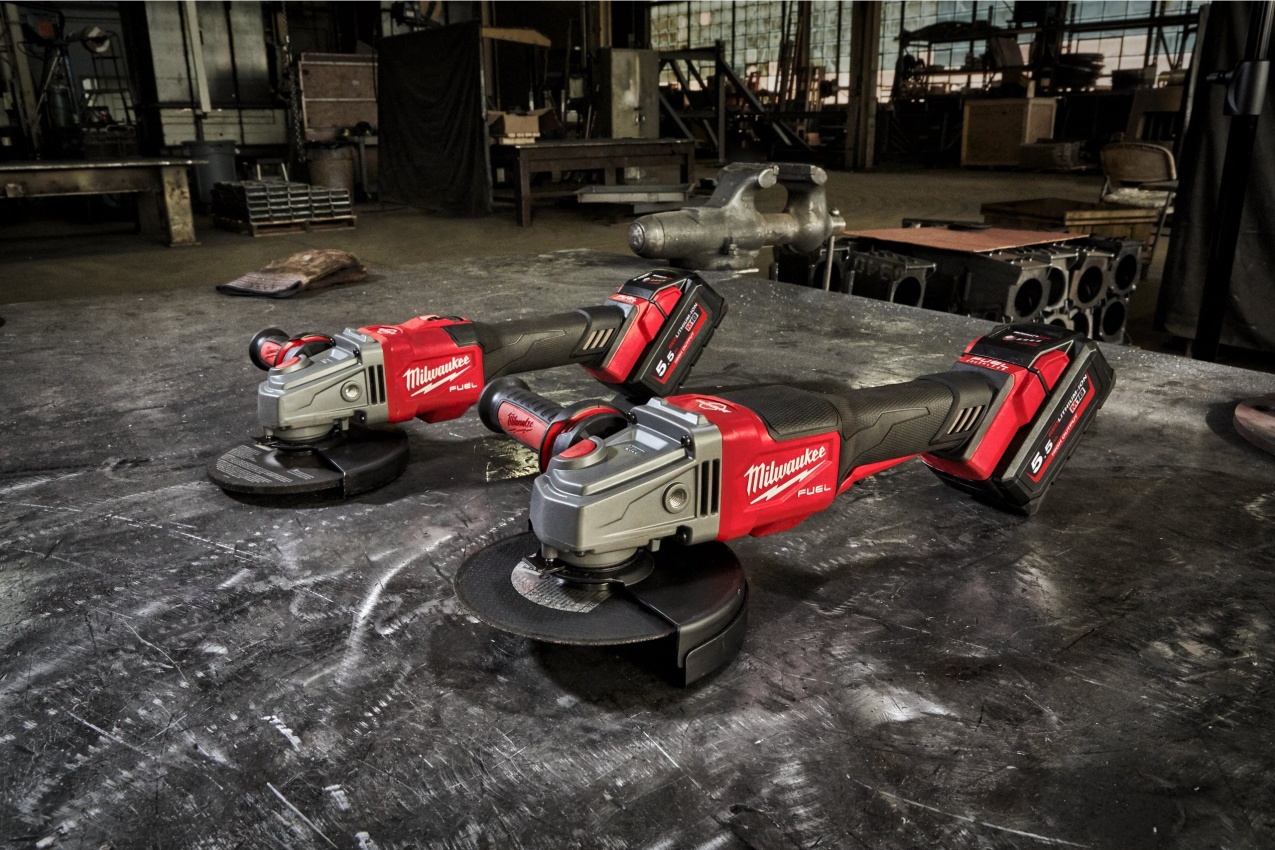 M18™ HIGH OUTPUT™ 125 mm malá úhlová bruska, která zvládne až 145 řezů do trubky z nerezu s průměrem 2″ na jedno nabití akumulátoru 5.5 Ah.