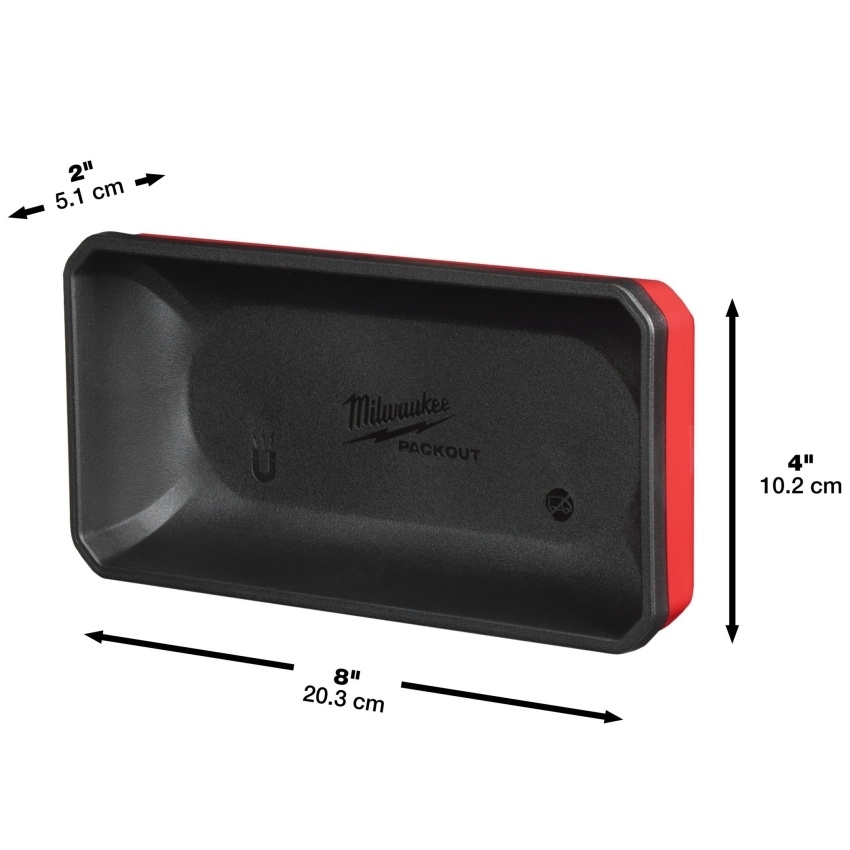 - Magnetická miska Milwaukee Packout slouží pro uložení šroubů, pásek a dalších drobných předmětů. Magnetické kontejnery lze díky magnetické zadní straně připevnit i na kovové povrchy.