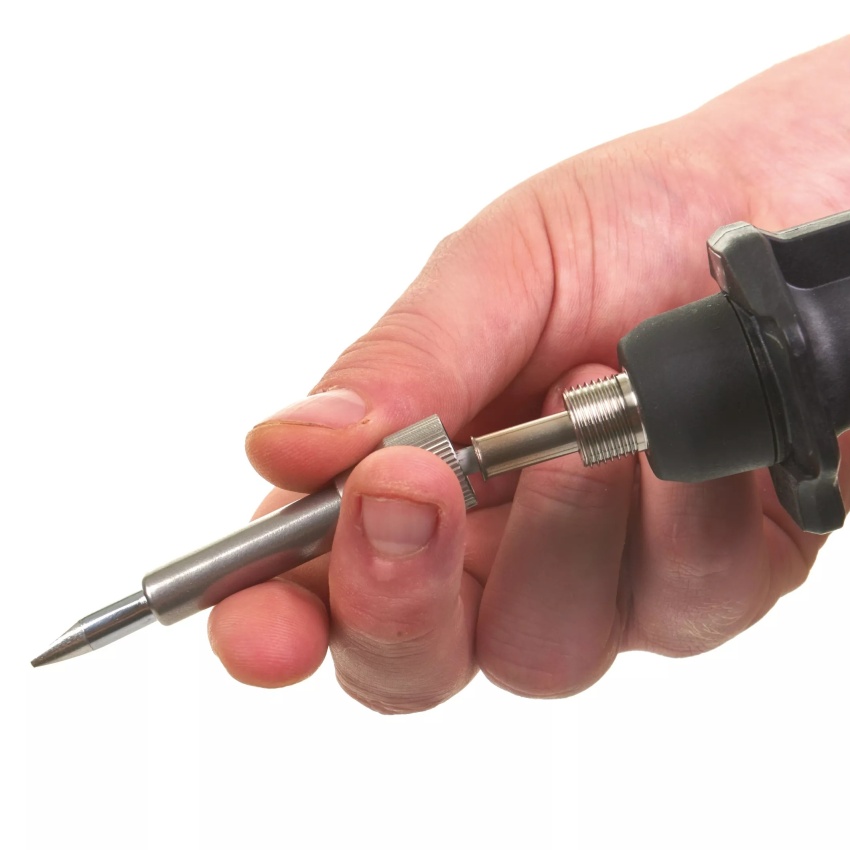 - barvou se nástroj zahřívá, při spojitém zeleném světle je připraven k provozu, červené světlo svítí, když je nástroj vypnutý, ale špička je horká, dokud červená nezhasne