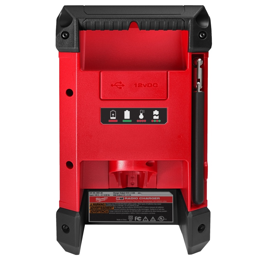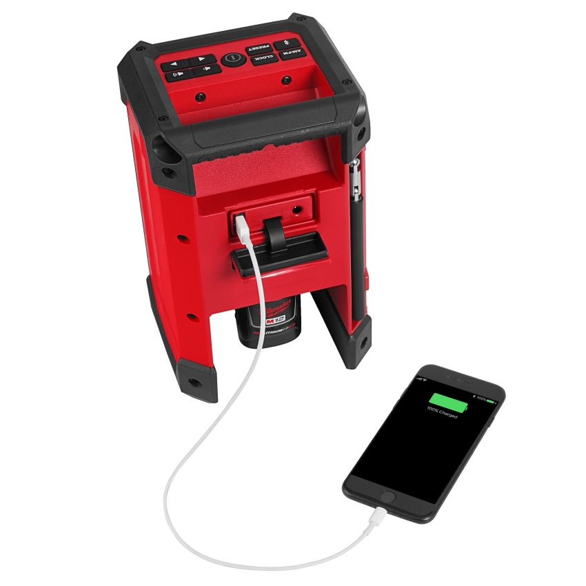 - Zabudovaná funkce nabíječky umožňuje rychlé a pohodlné nabíjení jakéhokoli akumulátoru M12™ nebo elektronického zařízení přes výstupní USB port