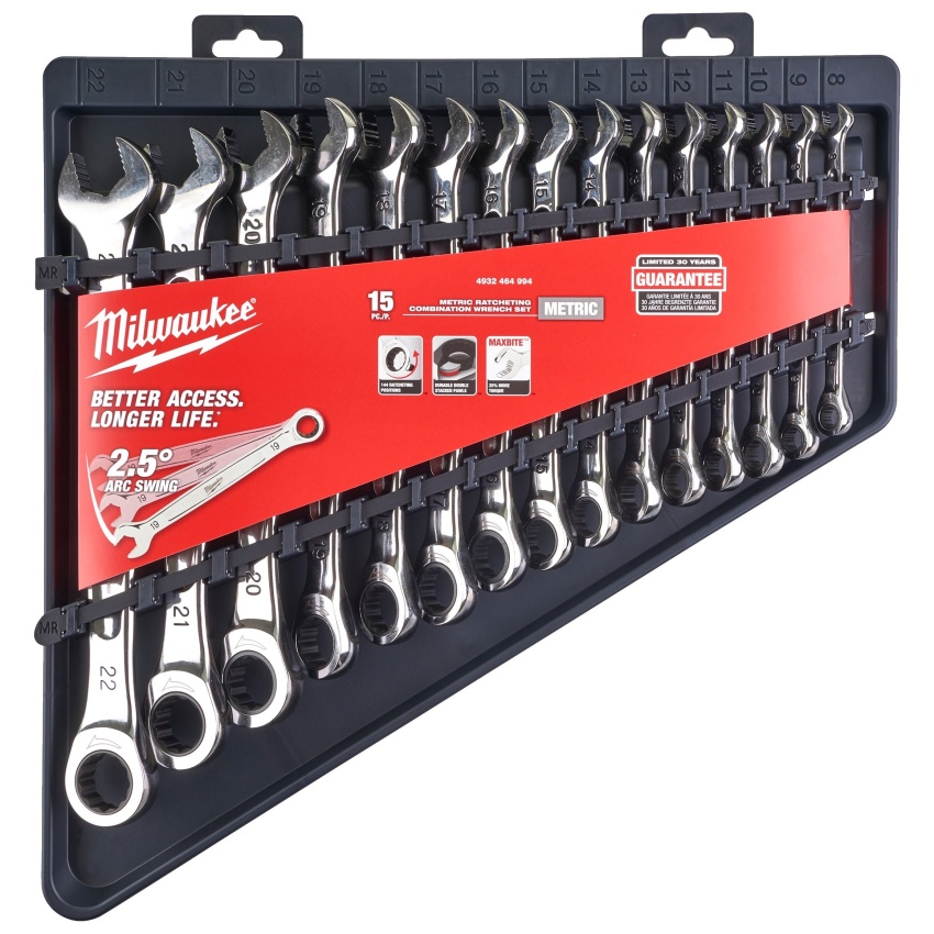 MILWAUKEE SADA KOMBINOVANÝCH KLÍČŮ MAX BITE S METRICKÝMI MÍRAMI (15KS), 4932464994