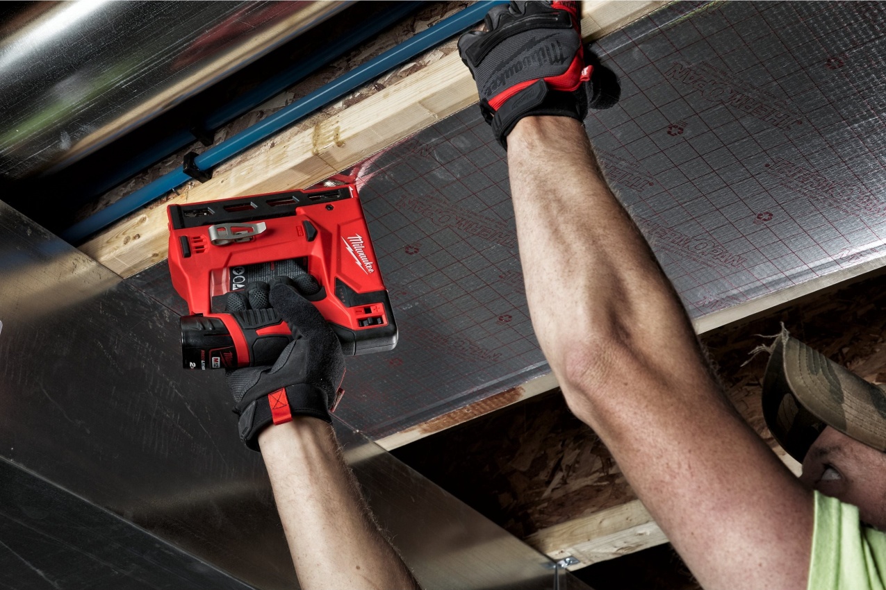 Akumulátorová sponkovačka Milwaukee M18 zajišťuje průlomový výkon snižující únavu uživatele tím, že eliminuje opakovaný pohyb ručních nástrojů.