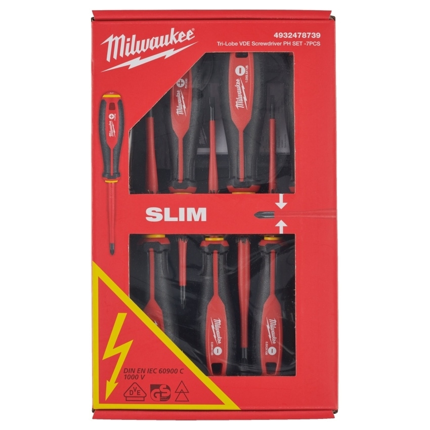 MILWAUKEE VDE SADA ŠROUBOVÁKY TRI-LOBE 7KS (SL2,5, SL3, SL4, SL5,5, PH1, PH2, TESTER)