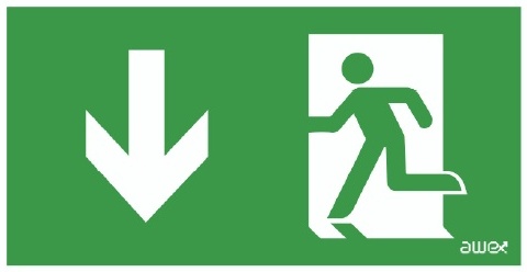 Piktogram P26 ÚNIK DOLŮ VLEVO (150x300mm)