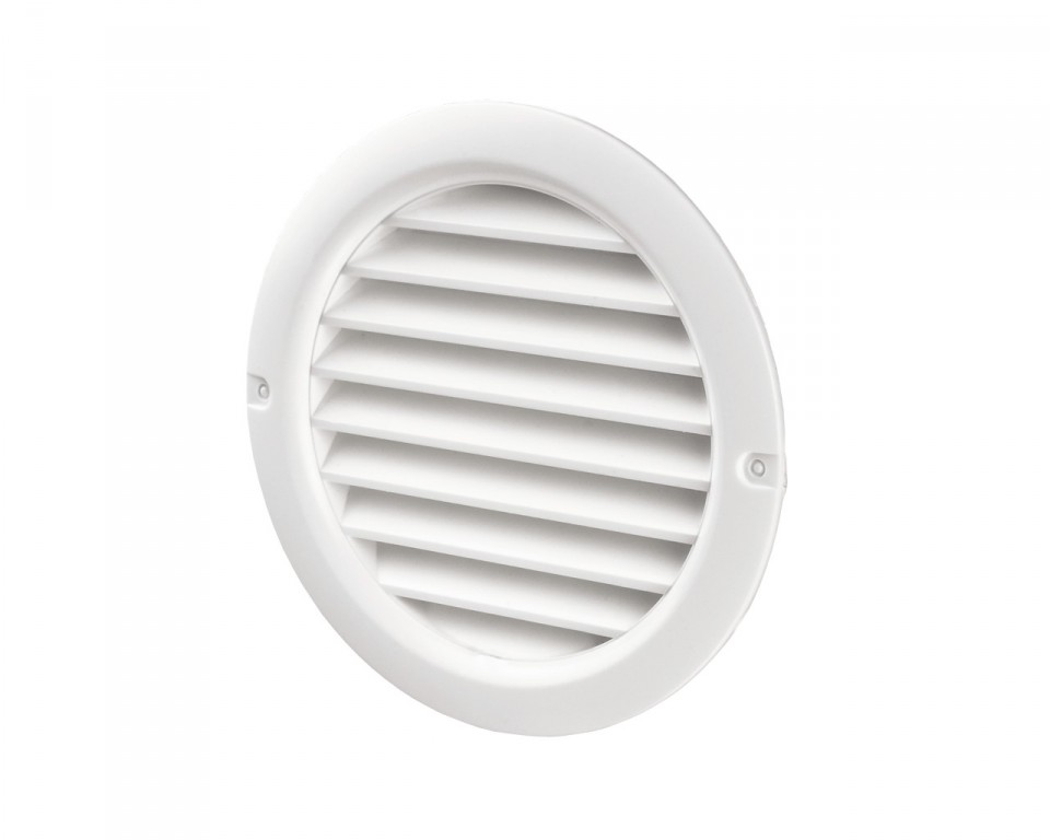 Plastová mřížka s kruhovým nástavcem a síťkou proti hmyzu z plastu ABS v bílé barvě. Průměr mřížky je 128 mm a kruhovým nástavcem má průměr 100 mm.