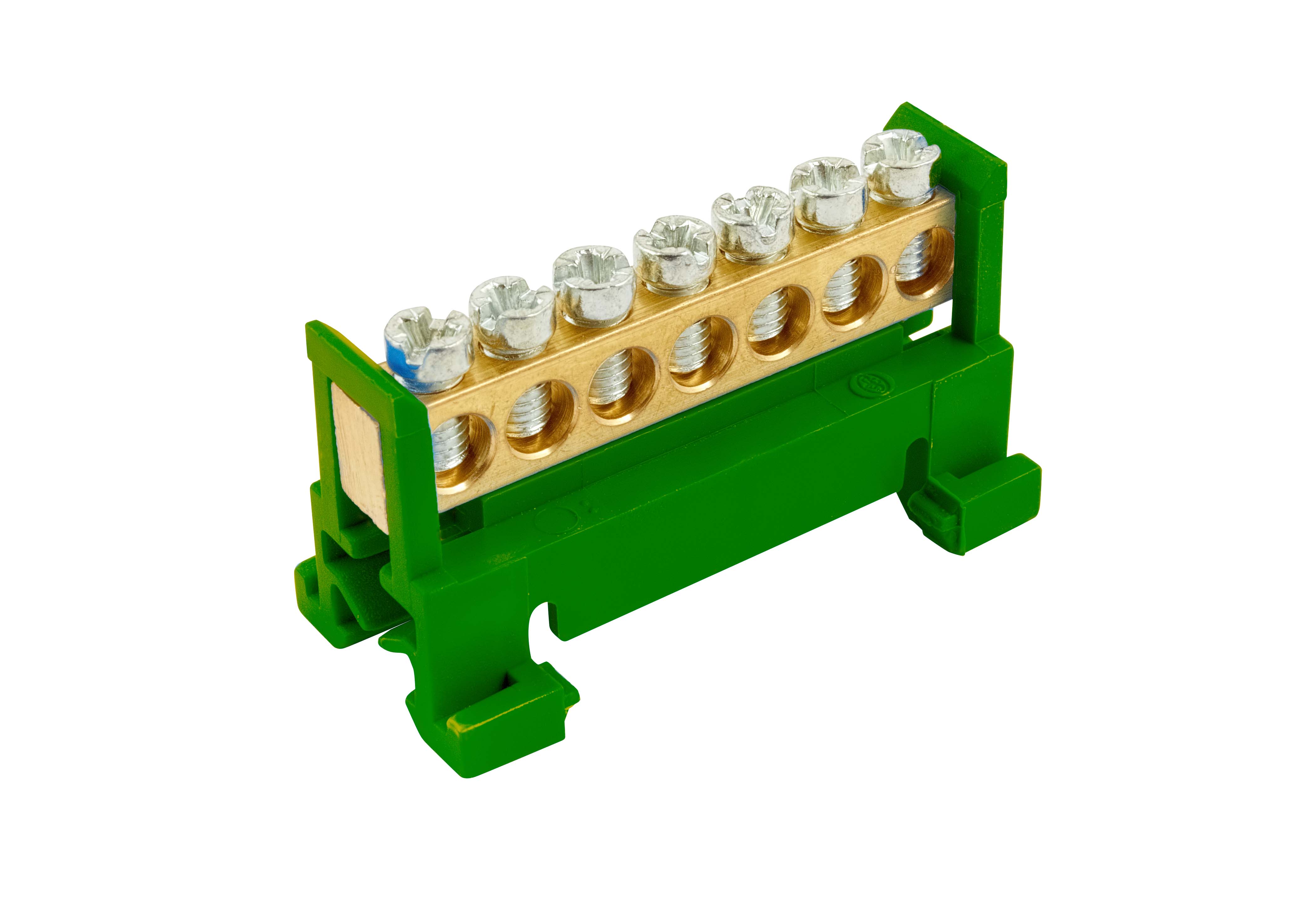 Můstek zemnící ELEMAN PE 7 (svorkovnice 7x16mm2) nekrytý IP00, 63A zelený, na DIN 1000012