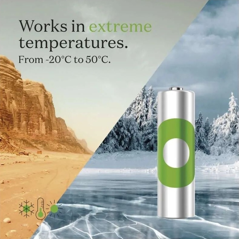 - Chemické složení baterií NiMH umožňuje vysoké teplotní rozpětí –20 až 50 °C a zachování kapacity při náročném každodenním používání.