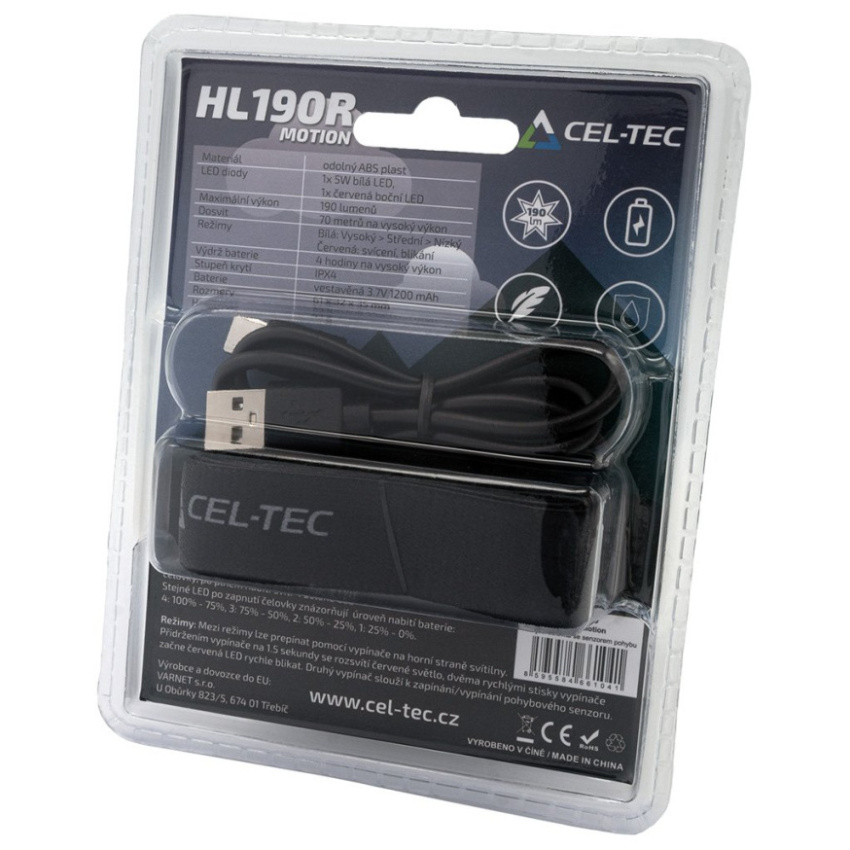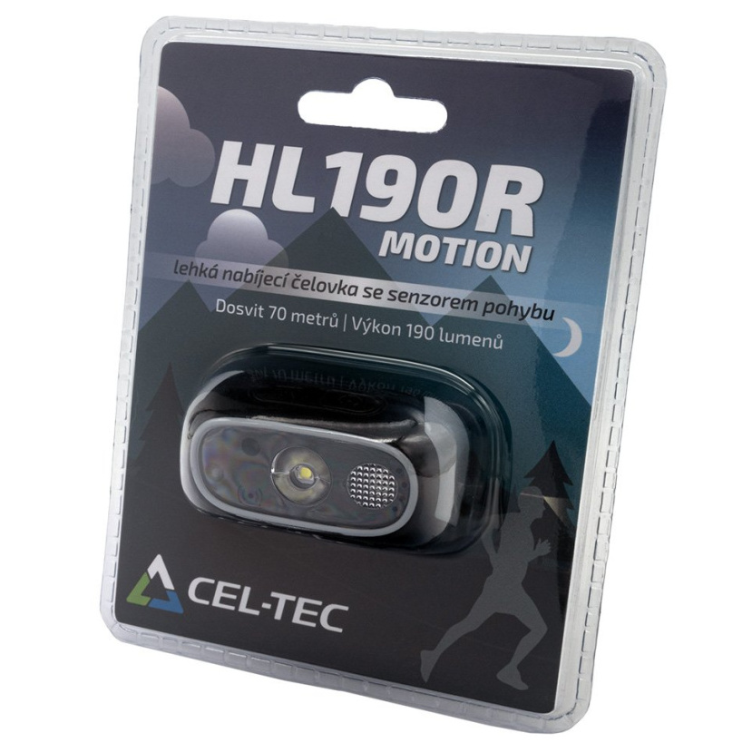 Lehká nabíjecí čelovka CEL-TEC HL190R je určena pro běžné outdoorové aktivity, jako je běh, turistika, horolezectví, běžecké lyžování nebo jen pro procházky se psem či rybaření. Čelovka je navíc vybavena senzorem pohybu pro snadné zapnutí/vypnutí pouhým mávnutím ruky.