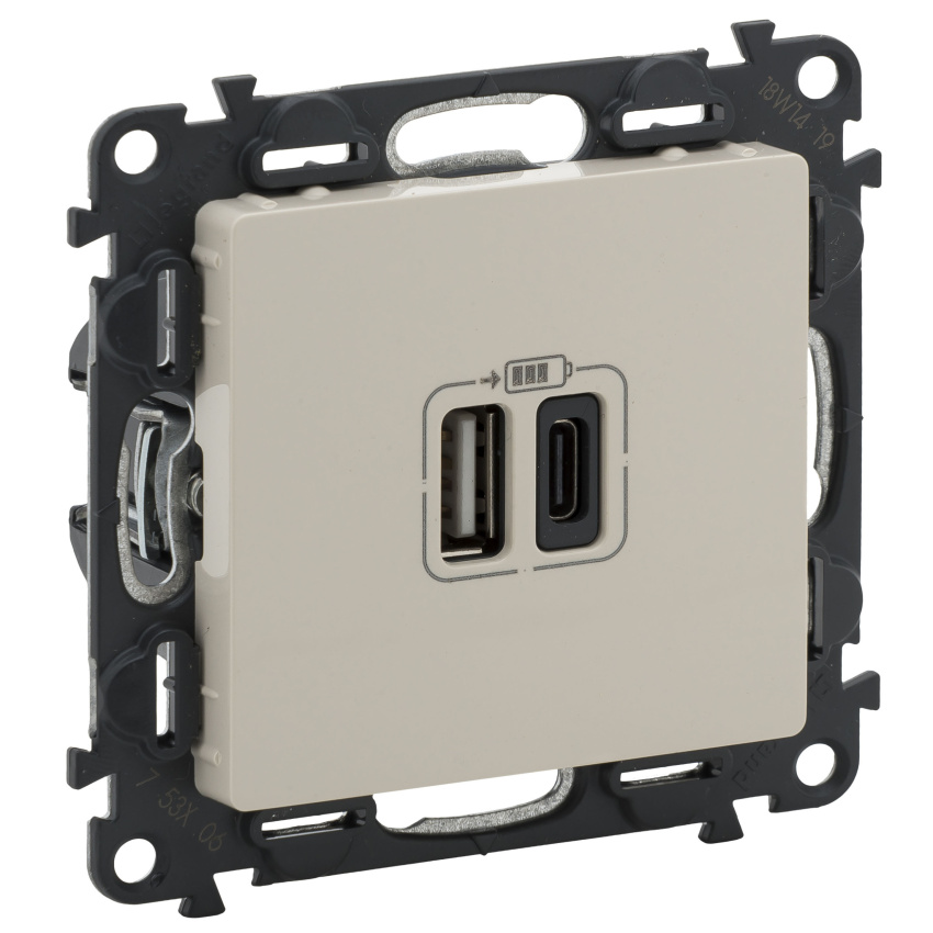 Nabíječka 2xUSB A+C Legrand Valena Life 753206, béžová