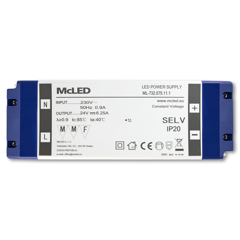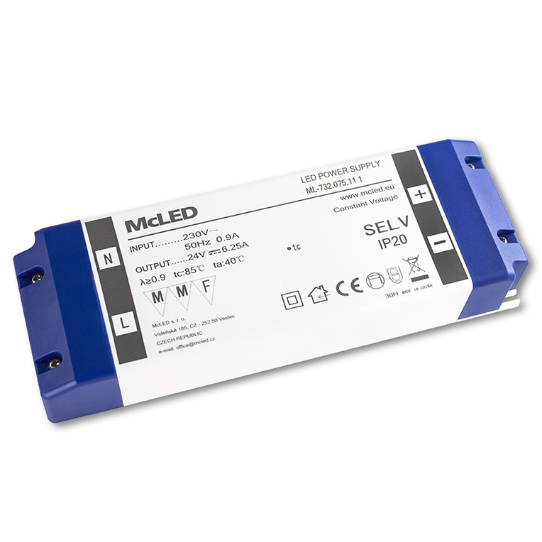 MCLED ZDROJ NAPÁJ. 150W DC24V 6,25A IP20 PLAST. PROVEDENÍ SE SVORKOVNICÍ ML-732.075.11.1