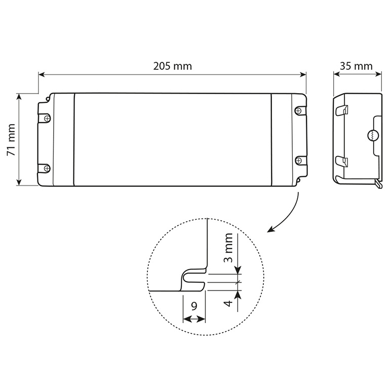 LED napěťový zdroj pro LED pásky 150 W, výstup DC 24V/6,25A. IP20. Vstupní a výstupní svorkovnice. Vstupní napětí 220 - 240V AC, materiál krytu: plast, barva bílá. Rozměry 205x71x35 mm, hmotnost 0,59 kg. Zdroj SELV, certifikáty: CE, RoHS, MM, F. Při výběru zdroje počítejte s výkonovou rezervou min. 20 %.
