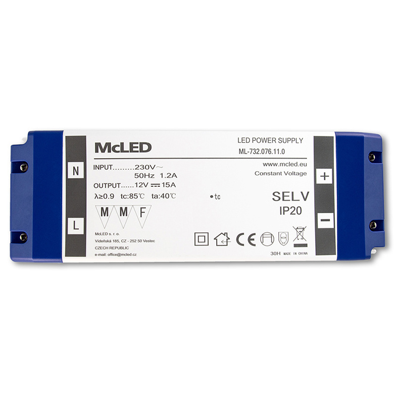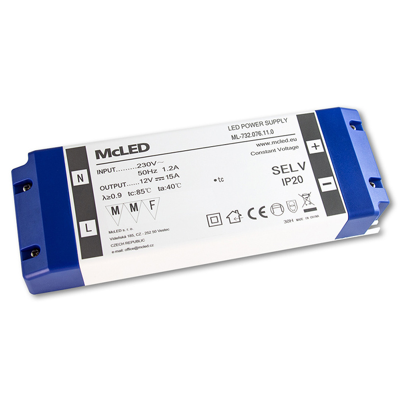 MCLED ZDROJ NAPÁJ. 180W DC12V/15A IP20 PLASTOVÉ PROVEDENÍ SE SVORKOVNICÍ ML-732.076.11.0