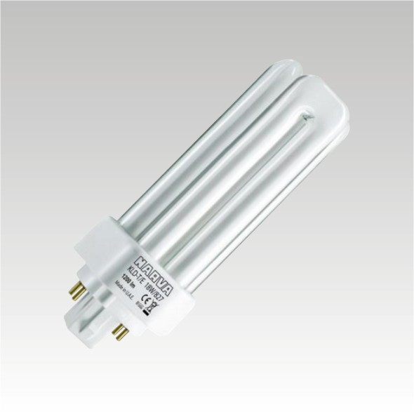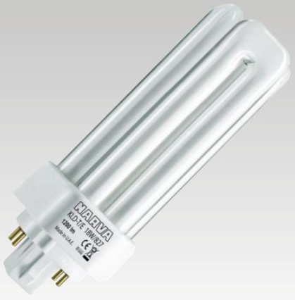 Třípásmové čtyřpinové kompaktní zářivky. Barevná teplota 6500K. Odstín chladná denní.