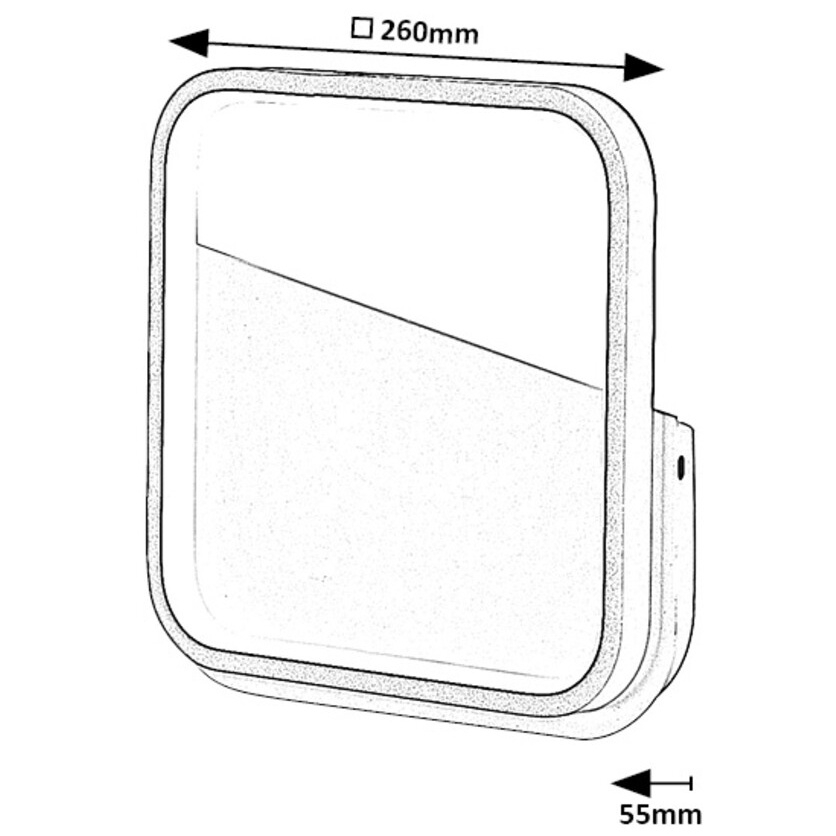 - Rozměry: 260 × 260 mm, vzdálenost od stěny 55 mm