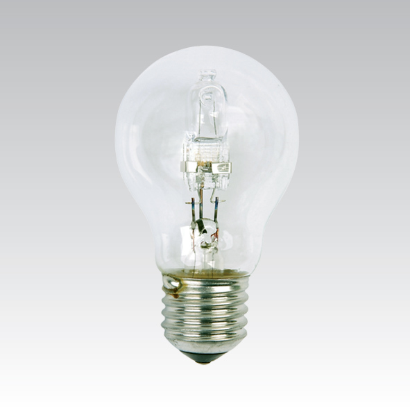 Halogenová dvouplášťová žárovka třídy "C", náhrada za žárovku 129W. Tyto žárovky šetří zhruba 20% elektrické energie a mají dvojnásobnou životnost, ve srovnání s obyčejnými žárovkami.