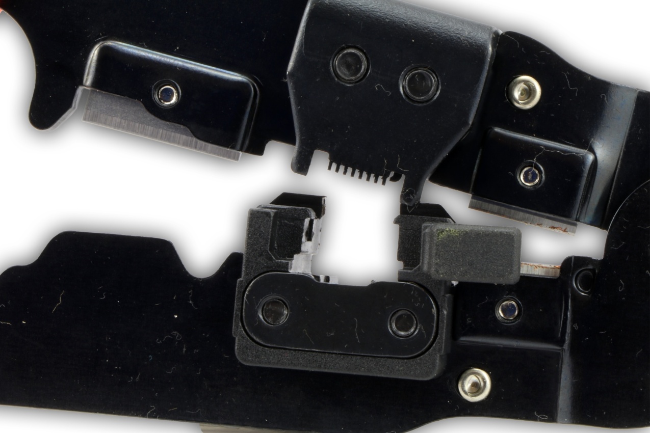 Ruční lisovací a odizolovací kleště pro práci s datovými konektory (typ RJ). Součástí kleští jsou střihací a odizolovací břity pro kompletní přípravu UTP kabelu k nalisování koncovky.