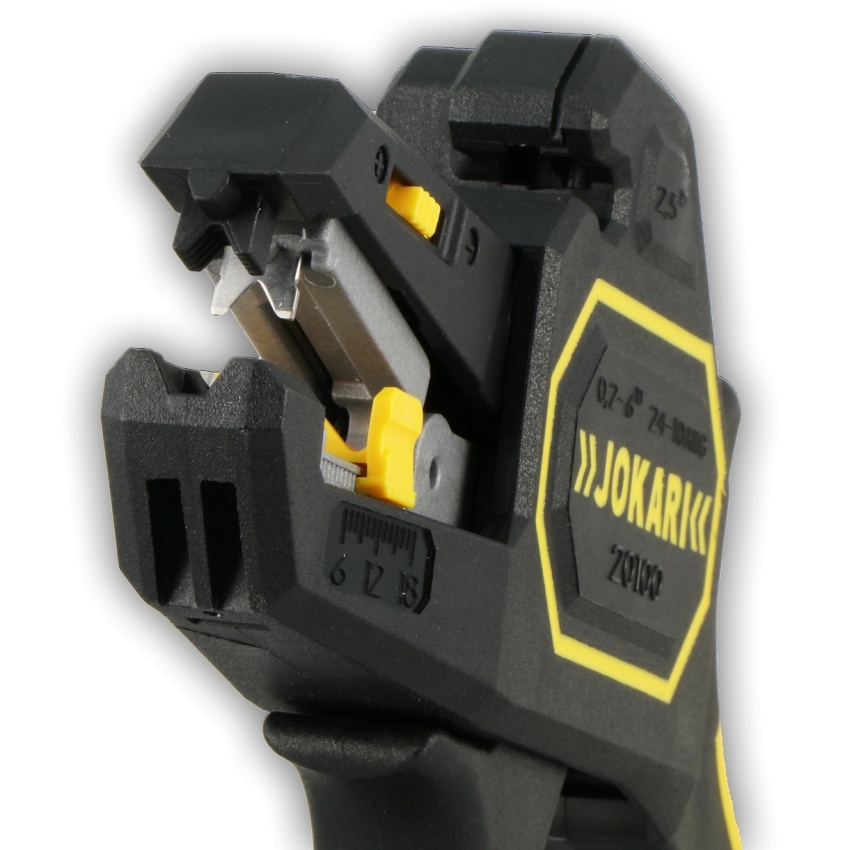 Kleště odizolovávací - Soft Griff, automatické odizolovávací kleště pro průřezy od 0,2 do 6 mm2, stranové štípačky pro vodič do průřezu 2,5 mm2, nastavitelný délkový doraz od 6 do 18 mm, rukojeť s protiskluzovým elastomerem.