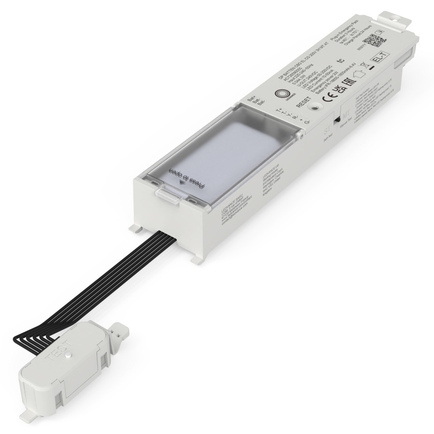 Nouzový modul LEDVANCE DP BATTEN CBO EL CG 200V 3H MT AT umožňuje snadno rozšířit standardní svítidla řady DP CBO (ON/OFF) o nouzovou funkci díky konceptu Plug & Upgrade. Integrovaná baterie LiFePO4 poskytuje autonomii > 3 h a údržbu zjednodušuje podpora manuálního (MT) i automatického (AT) testování, včetně rychlého přístupu přes integrovaný testovací spínač. Modul je vybaven bezšroubovou svorkou pro rychlé připojení, má kompaktní rozměry a odolné tělo z PC; je určen pro vnitřní použití (IP20) s provozem v rozsahu 0…+40 °C.