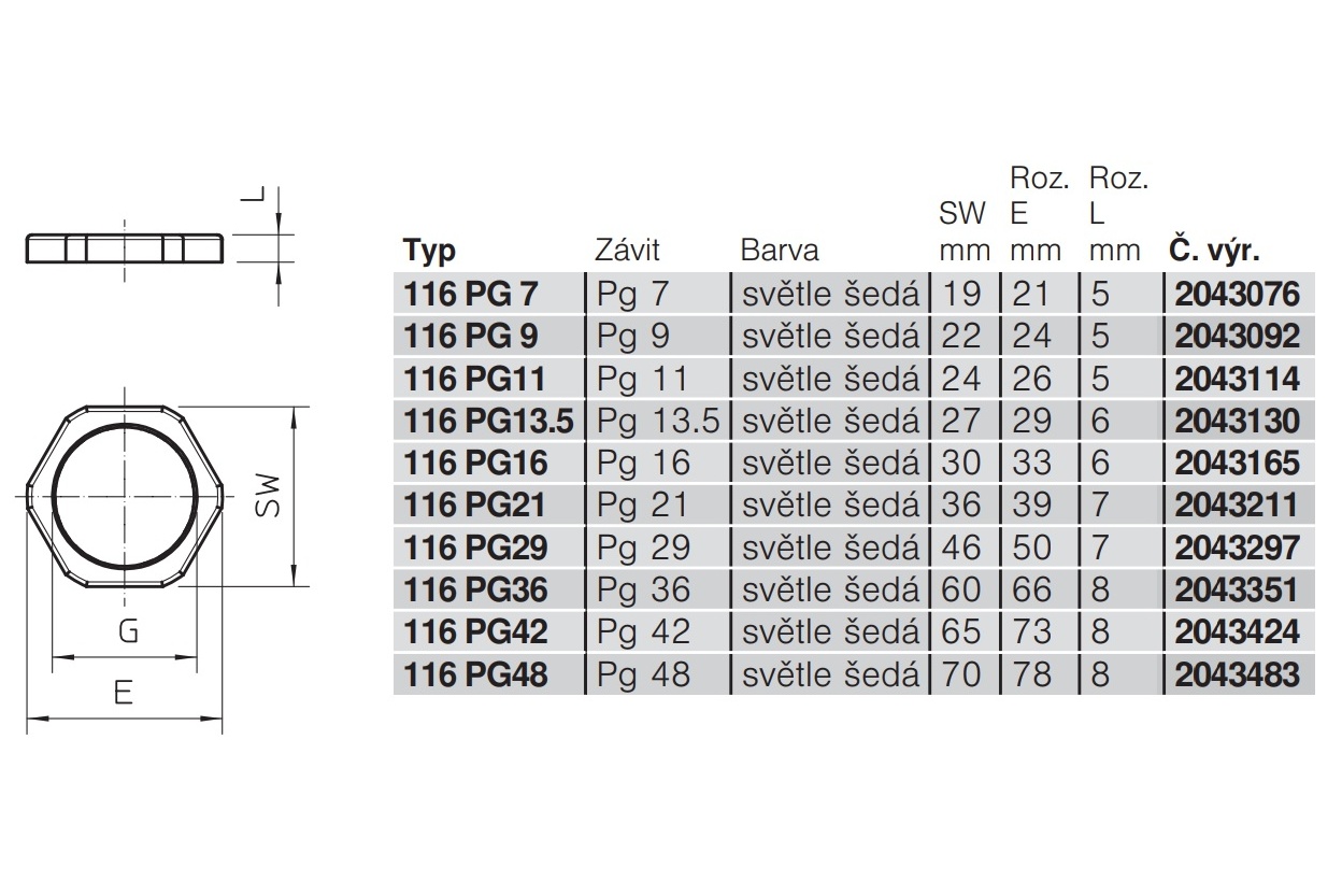 Pojistná matice dle DIN 46320, se závitem PG dle DIN 40430