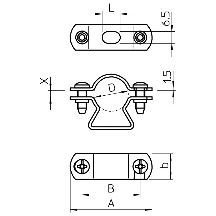 Distanční příchytka pro kabely a trubky. Materiál šroubu ocel.