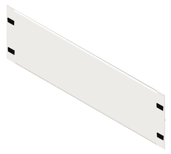 Kryt pro modulový systém. Provedení: bez výřezu. Slouží pro zakrytí přístrojů. Plastový, tloušťky 2 mm, k zakrytí např. svorek a prázdného místa. Celková výška pro zakrytí je shodná s vnitřní výškou rozvodnice.