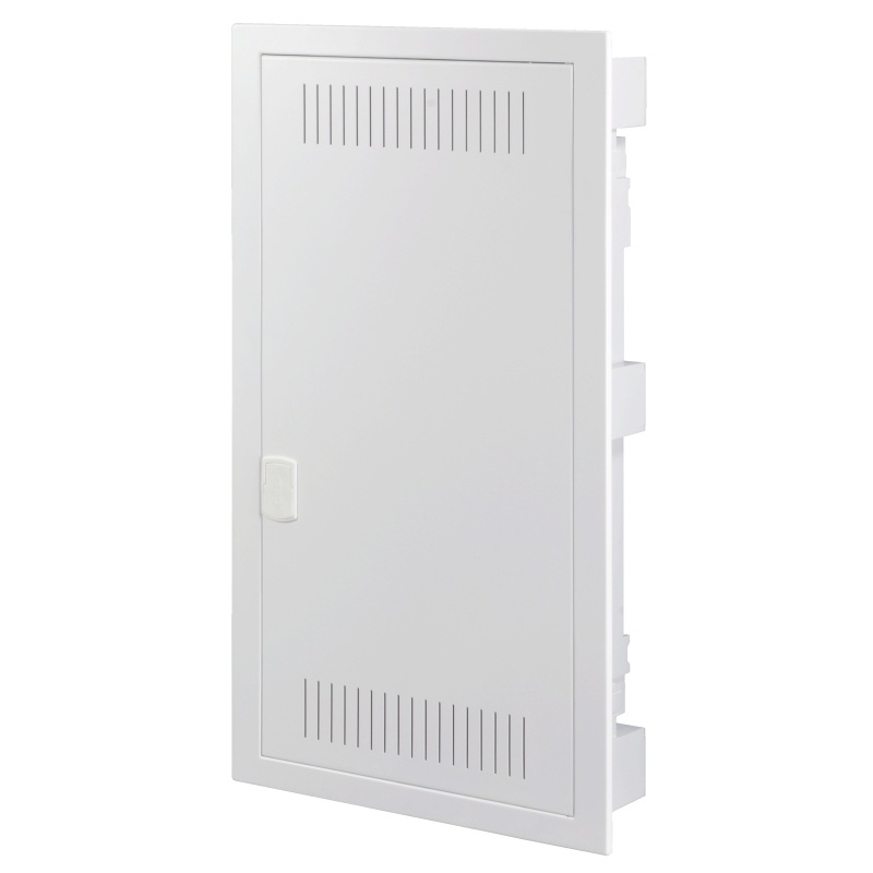 pro zapuštěnou montáž neprůhledné plechové dveře, počet řad 1, počet modulů v řadě 14, krytí IP30, barva bílá, materiál : ocel-plast, 2x přístrojový panel, 1x spojovací sada, bez čelního krytu