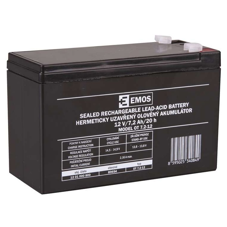 Olověný akumulátor EMOS GT12-7,2 12V 7,2Ah faston 4,7mm