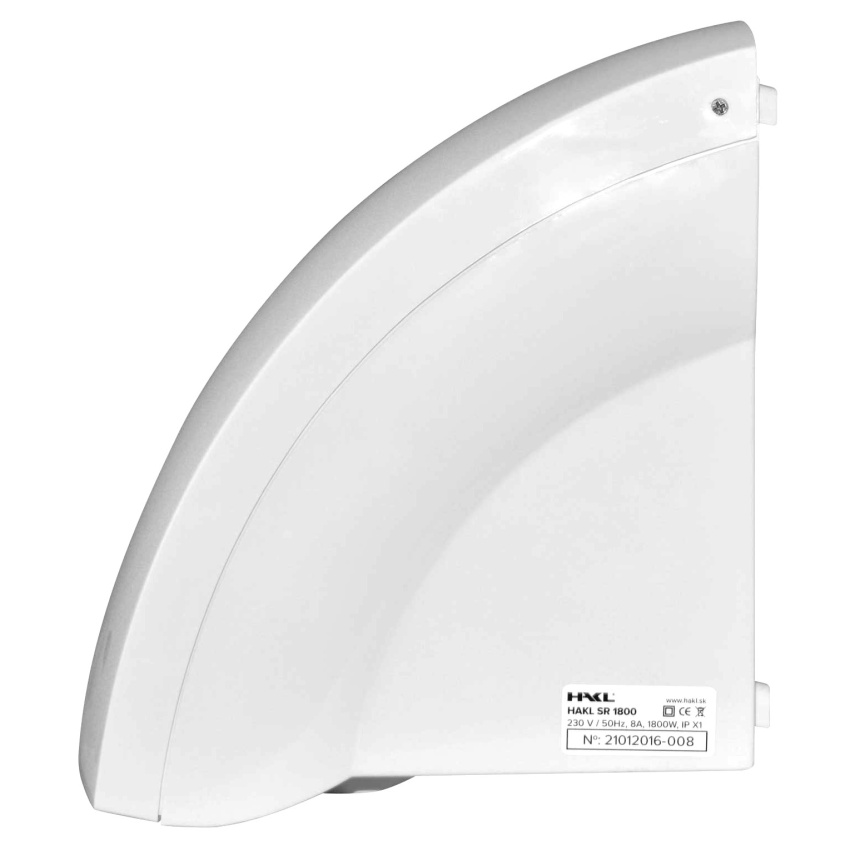 HAKL SR 1800 se automaticky uvede do činnosti přiblížením rukou ke spodní části vysoušeče. Senzor zapne spirálu a ventilátor spustí proud teplého vzduchu. Po vzdálení rukou se ohřev s malým zpožděním vypne. Bezdotykový provoz umožní hygienické a snadné osušení rukou. V případě neúmyslného umístění předmětu v dosahu senzoru vypne časová pojistka ventilátor po jedné minutě. Vysoušeč rukou HAKL SR 1800 je určen pro montáž na svislou stěnu a pomocí západky mechanismu na zadní straně krytu je chráněn proti nepovolené demontáži.