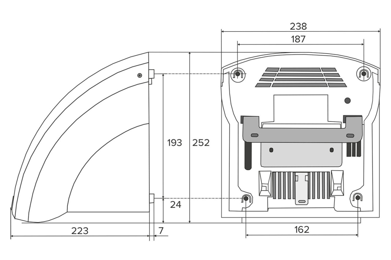 Připojení k elektrické síti je možné pomocí dodávaného přívodního kabelu, nebo připojením zabudovaného kabelu ze zdi přímo ke svorkovnici vysoušeče. Rozptyl vzduchu výkonného ventilátoru osuší ruce za krátkou dobu. Automatická obsluha vysoušeče a bezúdržbový provoz zaručují vysoký komfort použití.