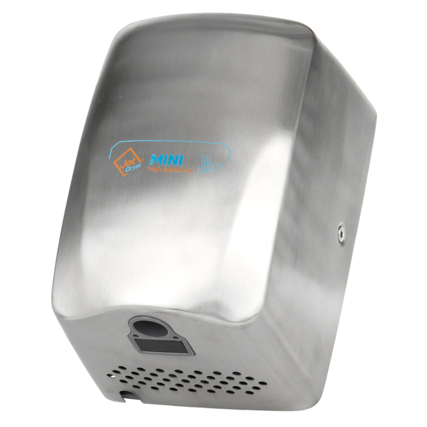 Jet dryer MINI je nejmenší horkovzdušný osoušeč z řady Jet Dryer. Přesto dosahuje dostatečného sušícího výkonu. Používáním horkovzdušných osoušečů Jet Dryer šetříte životní prostředí a vlastní náklady v porovnání s papírovými ubrousky.