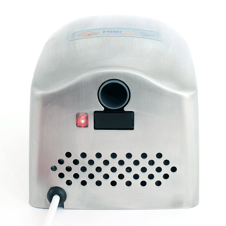 Provoz osoušeče MINI je zcela bezkontaktní. K sepnutí přístroje dojde okamžitě po přiblížení rukou k přístroji. Povrch z leštěného nerezu má zaoblené hrany pro snadnou údržbu.