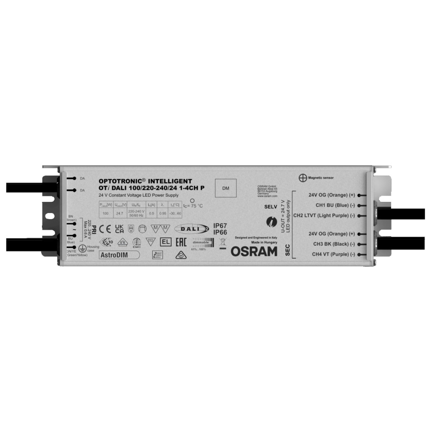 Zdroj konstantního napětí s DALI. Vlastnosti produktu: 1 to 4 DALI addressable channels AstroDim functionality Dimming range: 0/0, 1