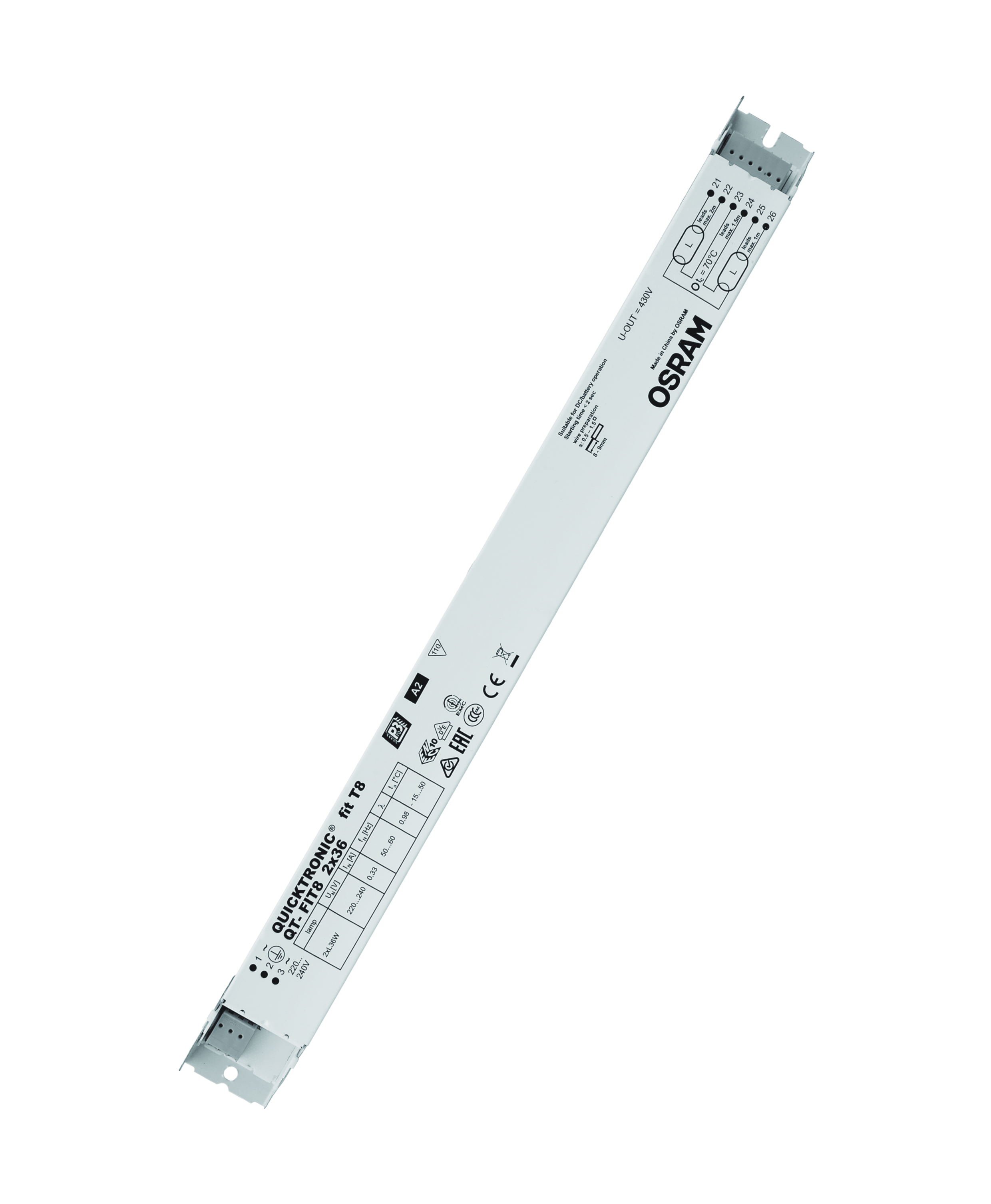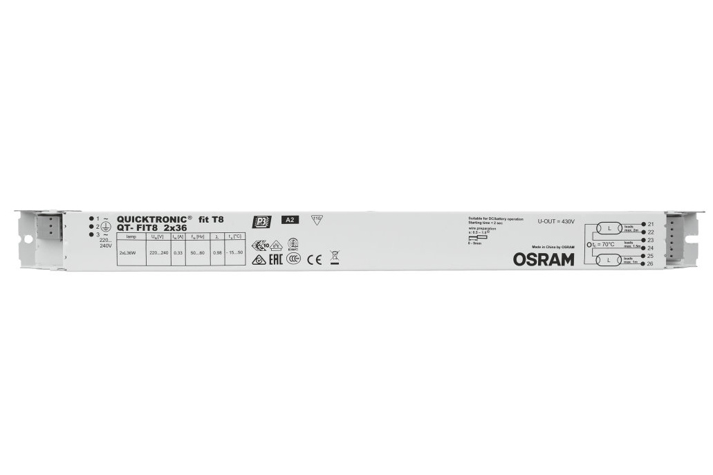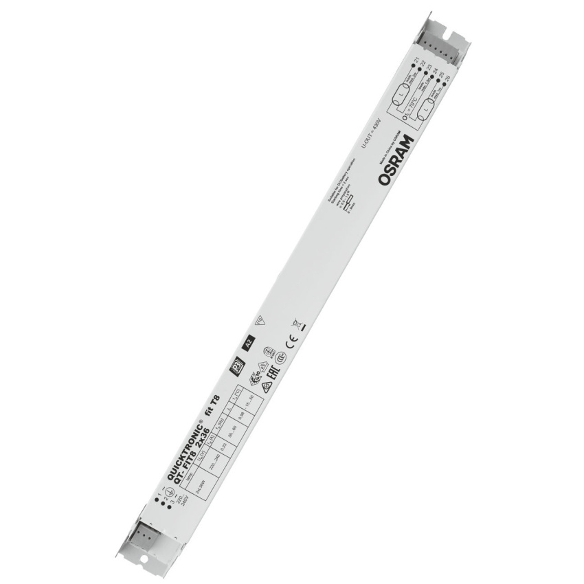 Výhody produktu: Dlouhá životnost světelného zdroje. Žádné nepříznivé dopady při častém zapínání a vypínání. Automatický restart po výměně světelného zdroje. Perfektní zapínání světelného zdroje pro instalace s pohybovými čidly. Systém certifikovaný podle VDE/VDE pro EMC. Velmi vysoká energetická účinnost díky odpojovací technologii. Vlastnosti produktu: Napájecí napětí: 220…240 V. Síťové napětí: 198 – 264 V. Kmitočet: 50 Hz | 60 Hz. Zapnutí světelného zdroje s optimálním předehříváním vlákna. Index energetické účinnosti EEI: A2. Automatické vypnutí vadných světelných zdrojů a zdrojů na konci života (EoL T.2). Provoz světelného zdroje: po EN 60929. Bezpečnost: podle EN 61347-2-3. Druh použití: Společné kanceláře, chodby a skladovací prostory. Veřejné budovy. Světelné pásy. Vhodné pro nouzové osvětlení (provoz na stejnosměrný proud). Vhodné pro svítidla třídy ochrany I.