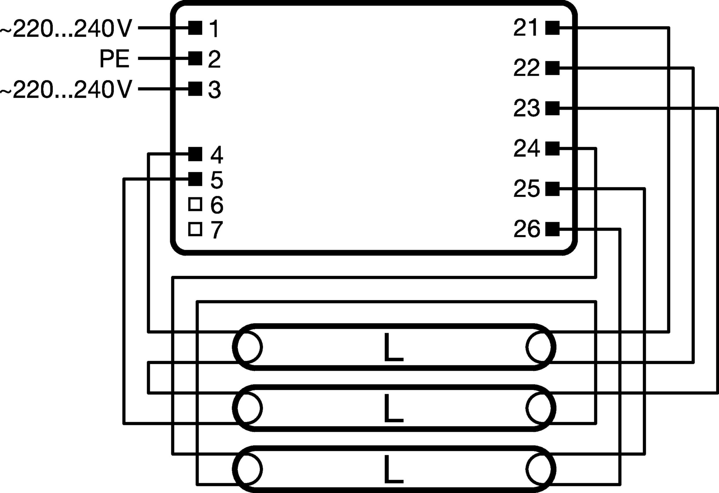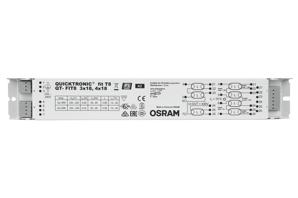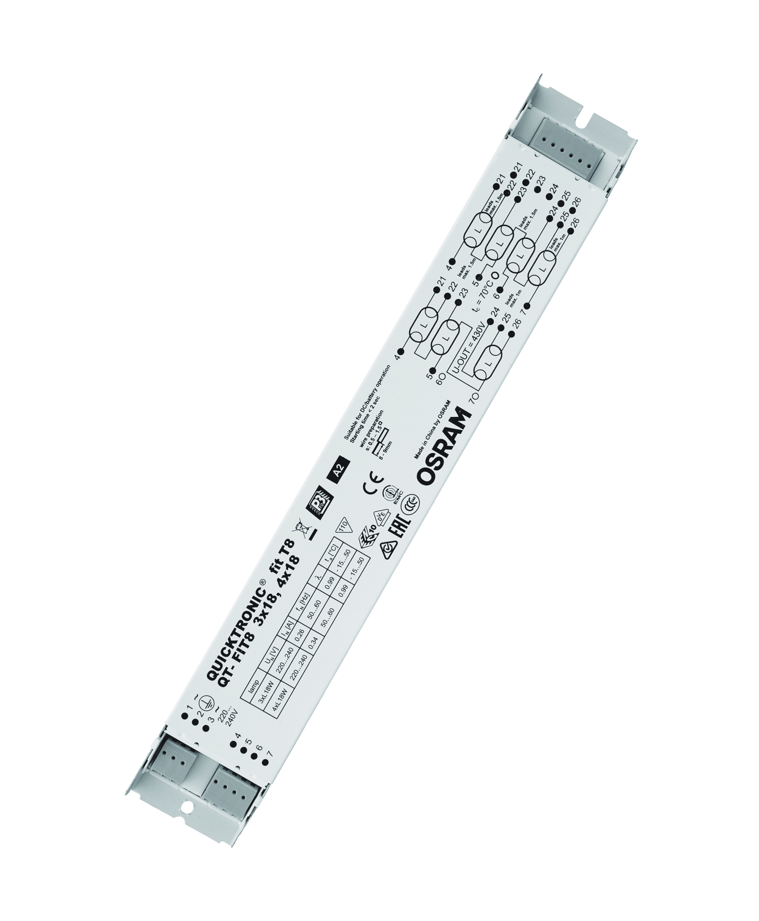 Výhody produktu: Dlouhá životnost světelného zdroje. Žádné nepříznivé dopady při častém zapínání a vypínání. Automatický restart po výměně světelného zdroje. Perfektní zapínání světelného zdroje pro instalace s pohybovými čidly. Systém certifikovaný podle VDE/VDE pro EMC. Velmi vysoká energetická účinnost díky odpojovací technologii. Vlastnosti produktu: Napájecí napětí: 220…240 V. Síťové napětí: 198 – 264 V. Kmitočet: 50 Hz | 60 Hz. Zapnutí světelného zdroje s optimálním předehříváním vlákna. Index energetické účinnosti EEI: A2. Automatické vypnutí vadných světelných zdrojů a zdrojů na konci života (EoL T.2). Provoz světelného zdroje: po EN 60929. Bezpečnost: podle EN 61347-2-3. Druh použití: Společné kanceláře, chodby a skladovací prostory. Veřejné budovy. Světelné pásy. Vhodné pro nouzové osvětlení (provoz na stejnosměrný proud). Vhodné pro svítidla třídy ochrany I.