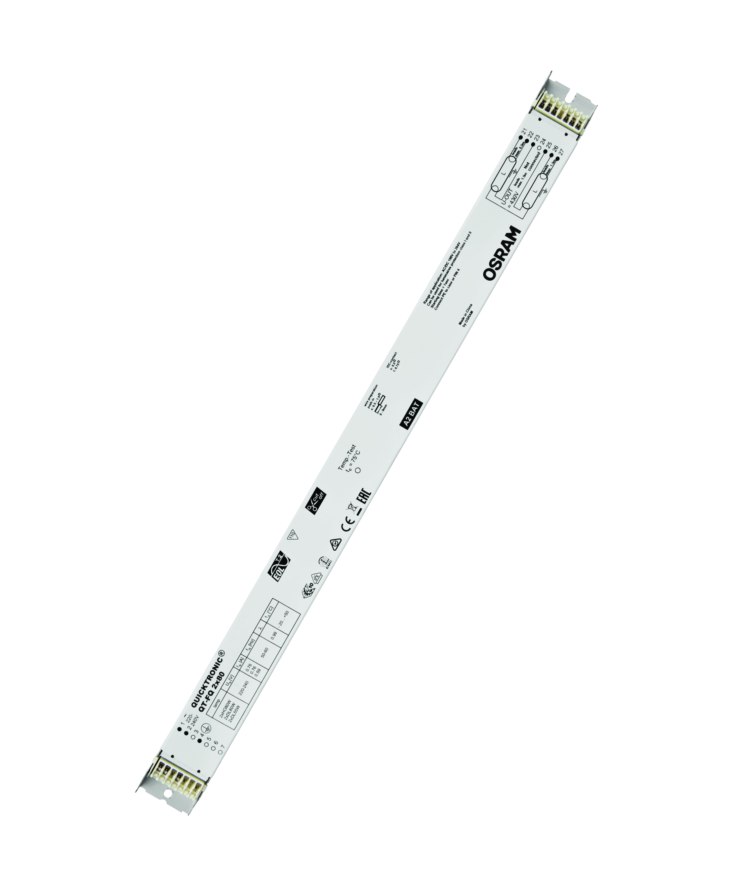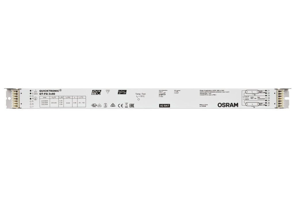 Výhody produktu: Dlouhá životnost světelného zdroje. Žádné nepříznivé dopady při častém zapínání a vypínání. Automatický restart po výměně světelného zdroje. Perfektní zapínání světelného zdroje pro instalace s pohybovými čidly. Systém certifikovaný podle VDE/VDE pro EMC. Velmi vysoká energetická účinnost díky odpojovací technologii. Vlastnosti produktu: Napájecí napětí: 220…240 V. Síťové napětí: 198 – 264 V. Kmitočet: 50 Hz | 60 Hz. Zapnutí světelného zdroje s optimálním předehříváním vlákna. Životnost: až 100.000 h (teplota Tc = 65 °C, četnost poruch max. 10 %). Index energetické účinnosti EEI: A2. Bezpečnost: podle EN 61347-2-3. Automatické vypnutí vadných světelných zdrojů a zdrojů na konci života (EoL T.2). Druh použití: Průmysl. Společné kanceláře, chodby a skladovací prostory. Veřejné budovy. Sportovní haly a továrny. Světelné pásy. Modernizace stávajících systémů.